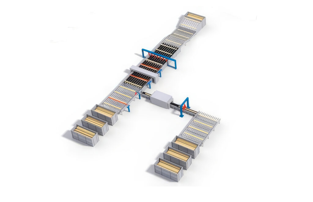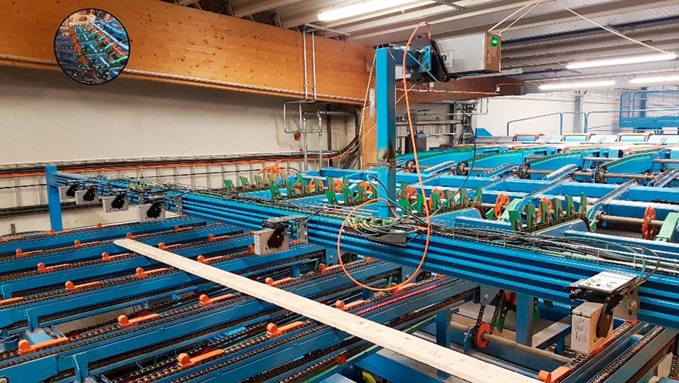 Typical layout for production of Board measurement systems for optimization of boards in dry and planer mills